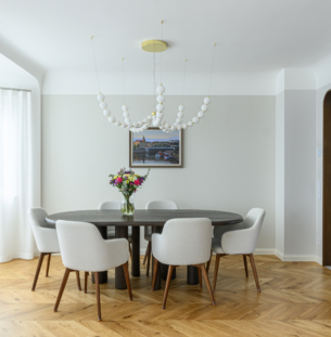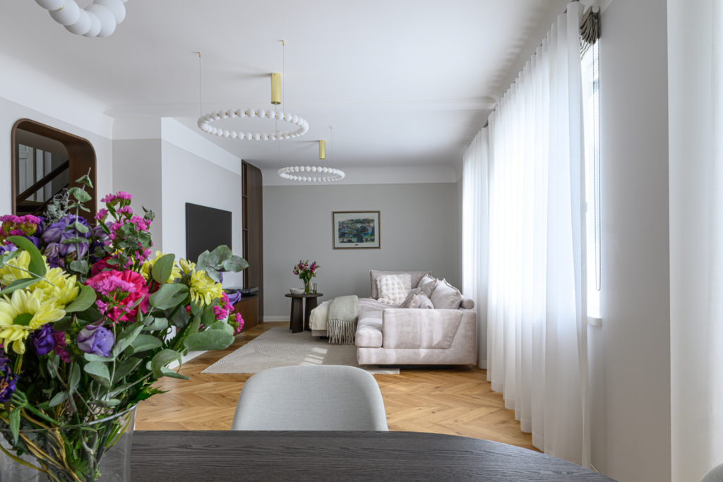 Üldvalgustus on lahendatud skulpturaalsete Perla rippvalgustitega, mis loovad ruumis pehme ja ühtlase valguse ning toimivad samal ajal pilkupüüdvate disainielementidena.