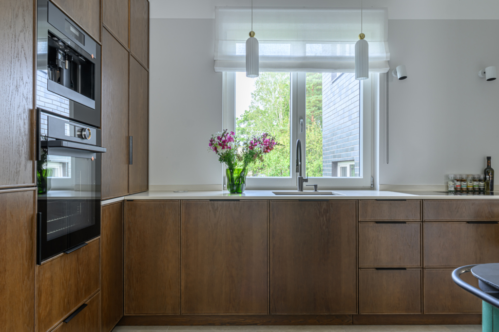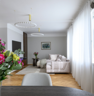 Eramu valgustuslahendus rõhutab rahulikku, ajatut ja läbimõeldud interjööri, kus iga valgusti täidab nii funktsionaalset kui ka esteetilist rolli.