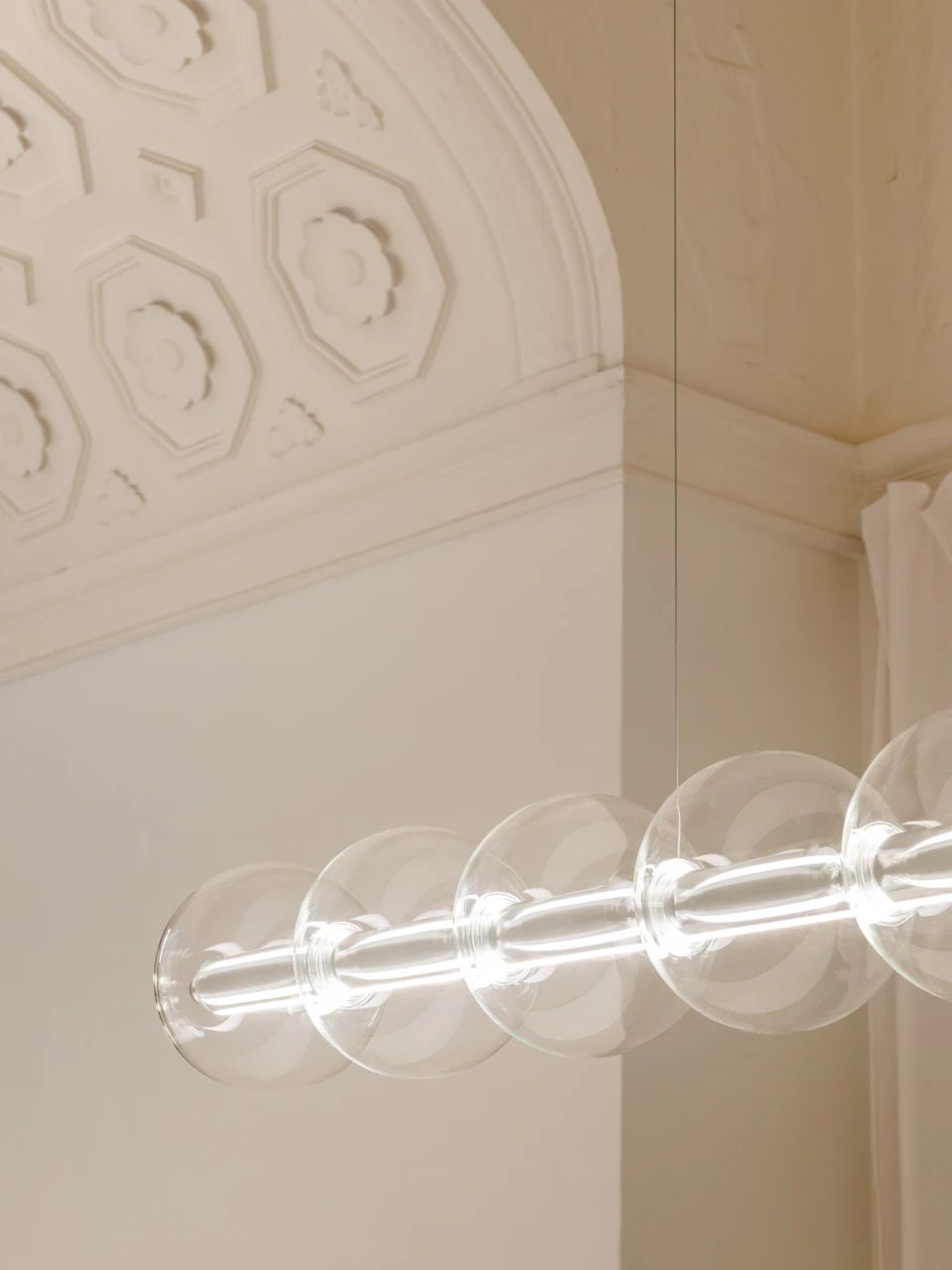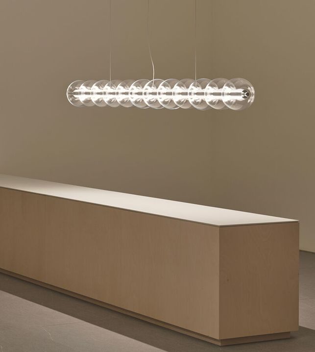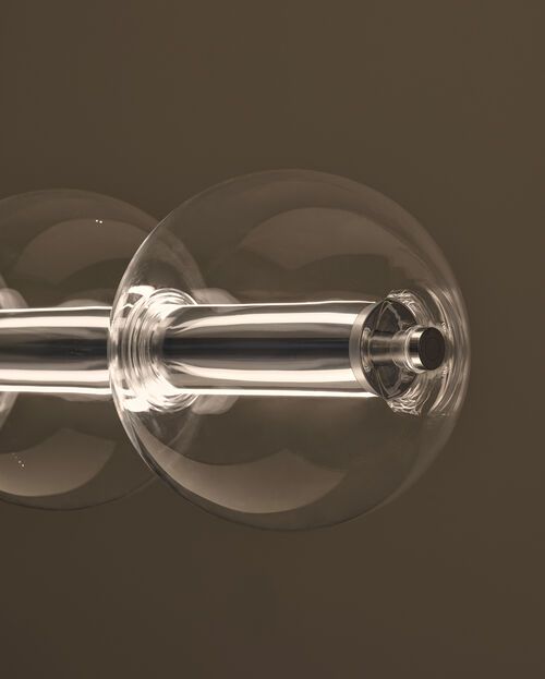 Valgusti meenutab veetilku, mis ripuvad lõngal või seebimulle, mida lapsed puhuvad. Poleeritud alumiiniumist „vardale“ pikitud puhutud klaasist sfäärid on väga õhuked, läbipaistvad ja seetõttu valguse hajutamiseks sobiv materjal. Borosilikaatklaas tagab ülima läbipaistvuse ja vastupidavuse samaaegselt. Valgusallikateks on kaks LED-riba, mis suunavad valgust üles- ja alla ning mida saab reguleerida valgusti otsas asuva dimmerlüliti abil. Puhutud klaasist sfäärid saab vajadusel lihtsasti eemaldada ja asendada.