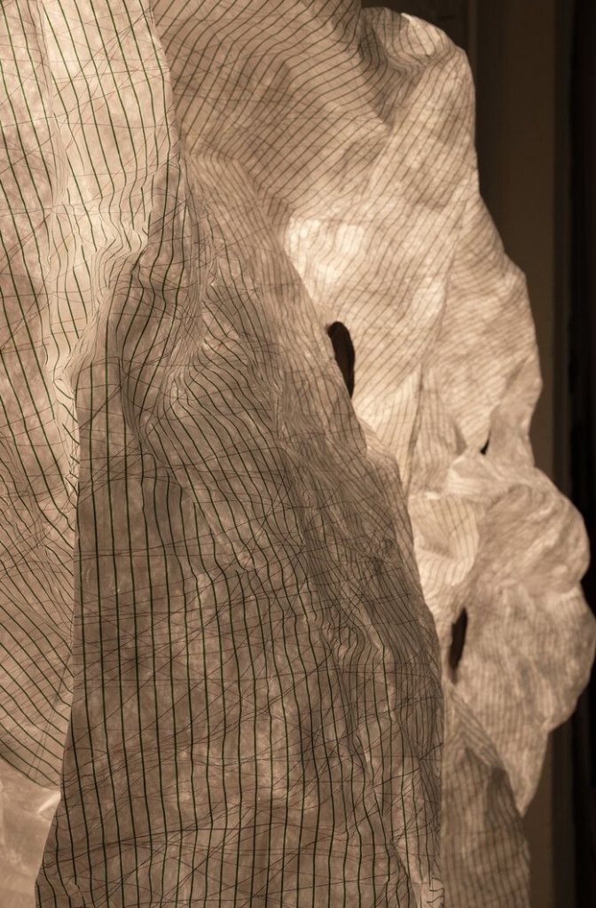 Tyvek-ist korpus on kinnitatud ristikujulisele metallraamile, kasutades magnetilisi “punkte”. See uuenduslik lahendus annab täieliku vabaduse kortsutada, voltida ja kujundada valgustit, andes igale installatsioonile unikaalse kuju ja iseloomu.