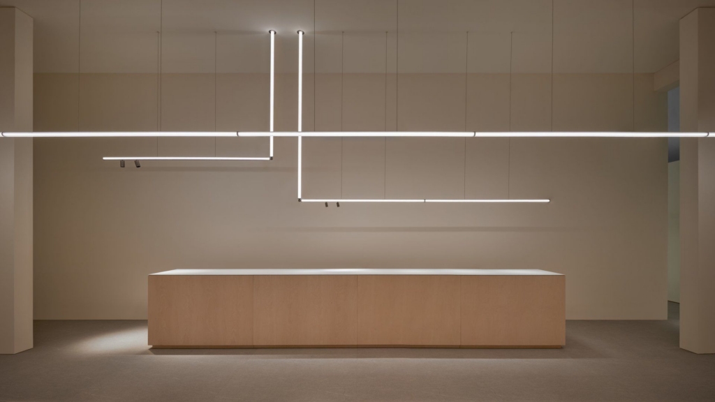 Flos Coordinates valgustus süsteem koosneb horisontaalsetest ja vertikaalsetest valgustorudest.