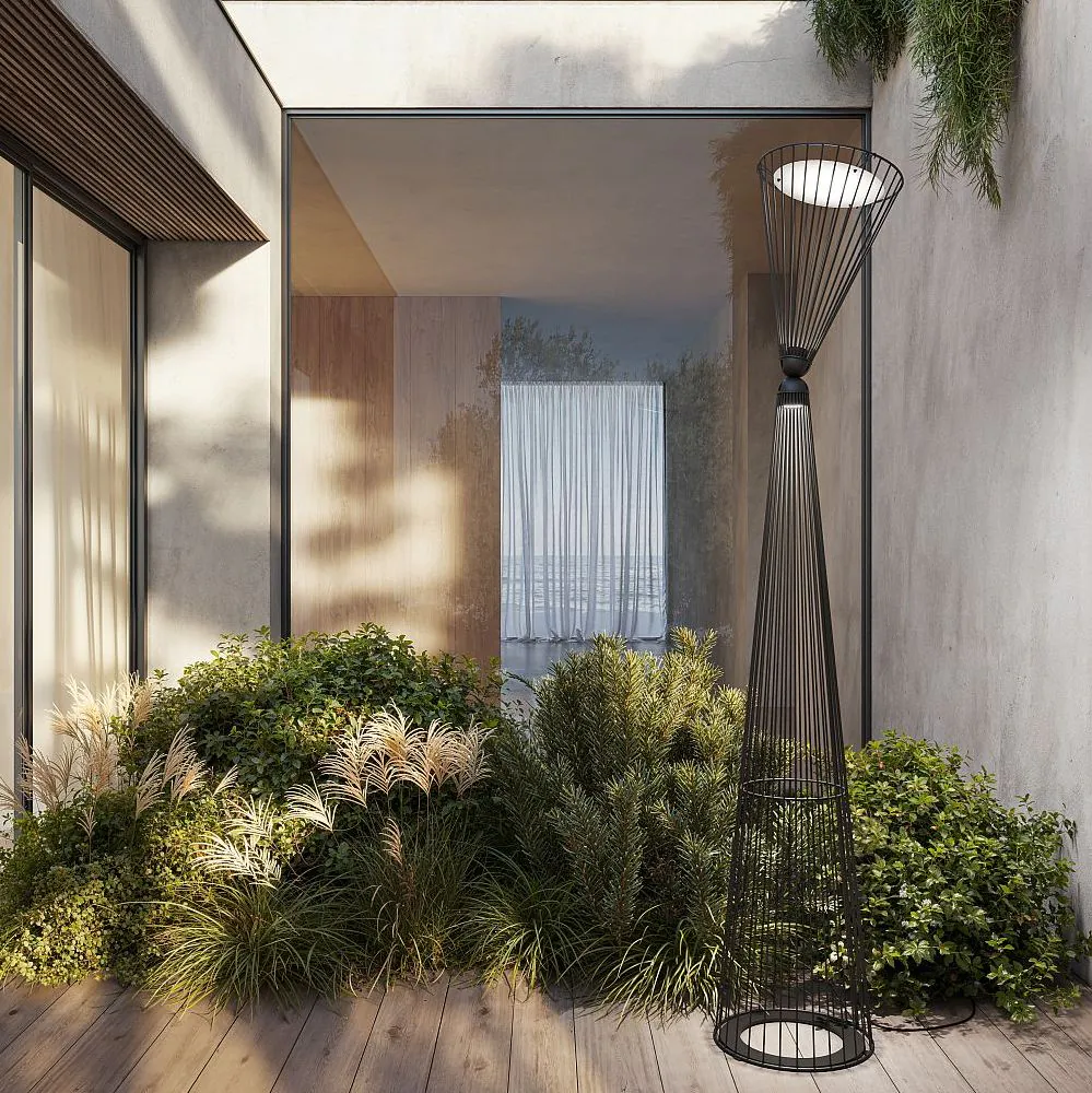 Välisvalgusti Pois püüab pilku oma dekoratiivse välimuse ja esteetilise iluga.  Saadaval on kolme erinevat kõrgust: 93cm, 118cm ja 158cm. Valgusti materjal on alumiinium, mis on värvitud mustaks ning kuppel on valmistatud vaigust. Matteo Ugolini loodud loodust imiteeriv välisvalgusti Pois on iga aia ehe.