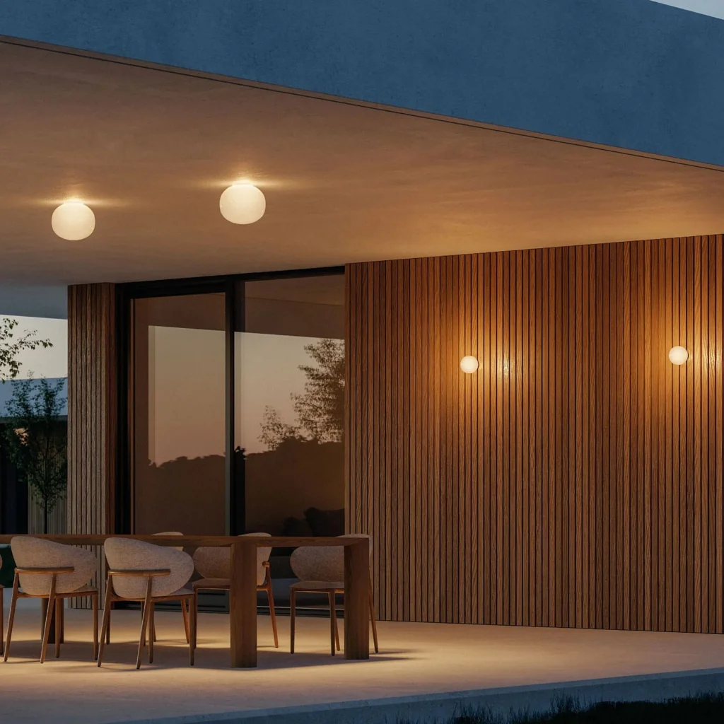 Terassi ja rõdu saab valgustada hubaseks niiskuskindlate põrandalampide või rippvalgustitega.