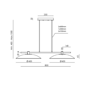 Valgusti kaugust laest on võimalik kombineerida komplektis olevate pikendustorudega (min 40cm-max.150cm)