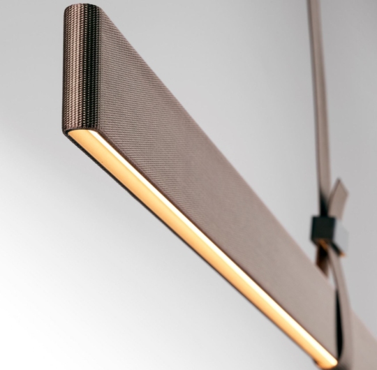 Tekstiilkangast kattega valgusti Belt disaini iseloomustab paindlikkus ja looklevus.