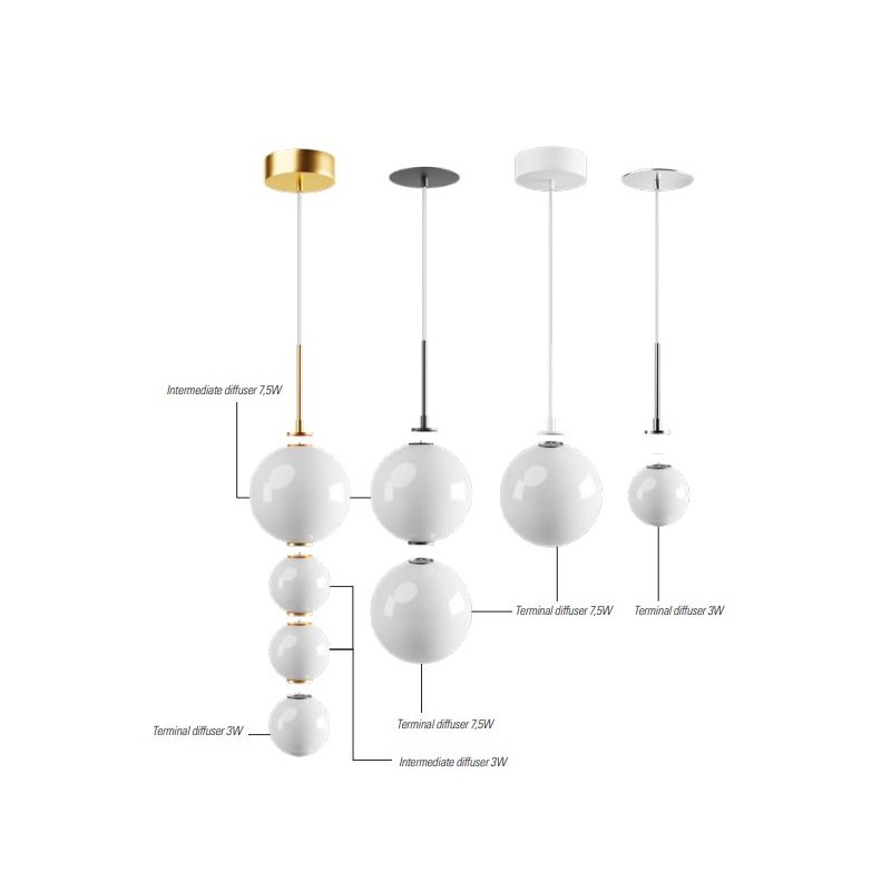 Valgustit saab kokku kombineerida erinevatest laekinnitusetest ja klaaskuplitest.