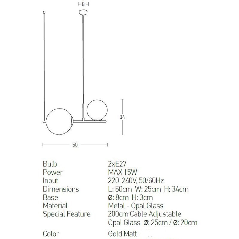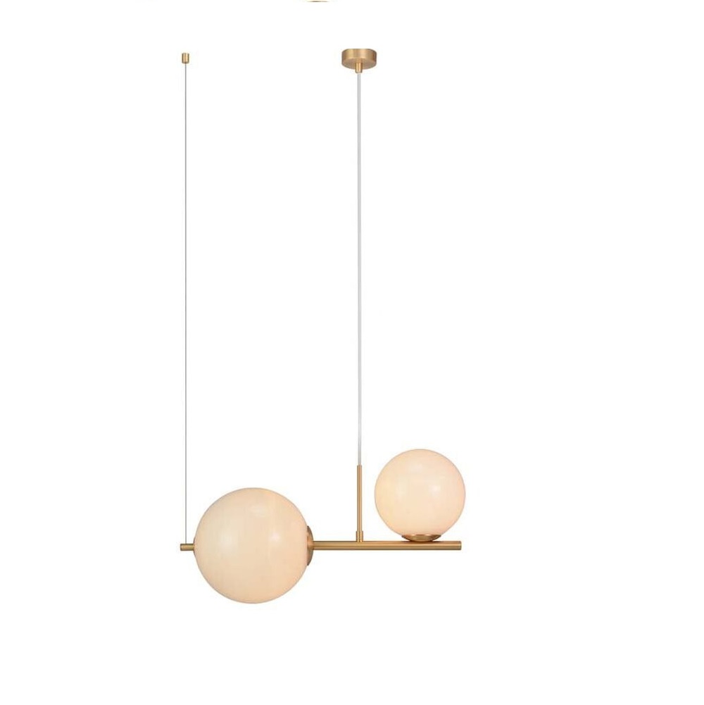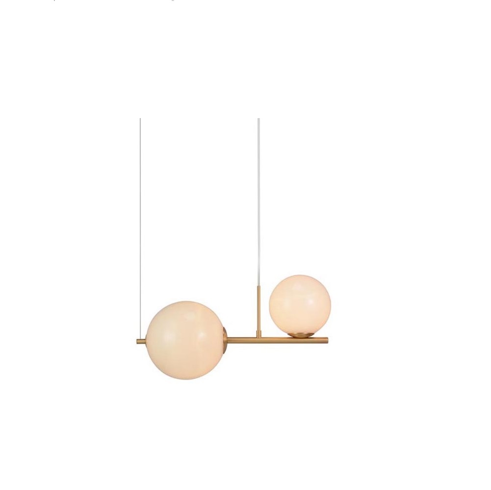 Matt-kuldse pinnakattega ja valgest opaalklaasist kuplitega rippvalgusti.