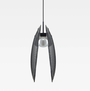 Käsitööna valminud modernne skulpturaalne rippvalgusti meenutab visuaalselt õrnade merekarbikarpide kuju, milles kasvavad hinnalised pärlid.