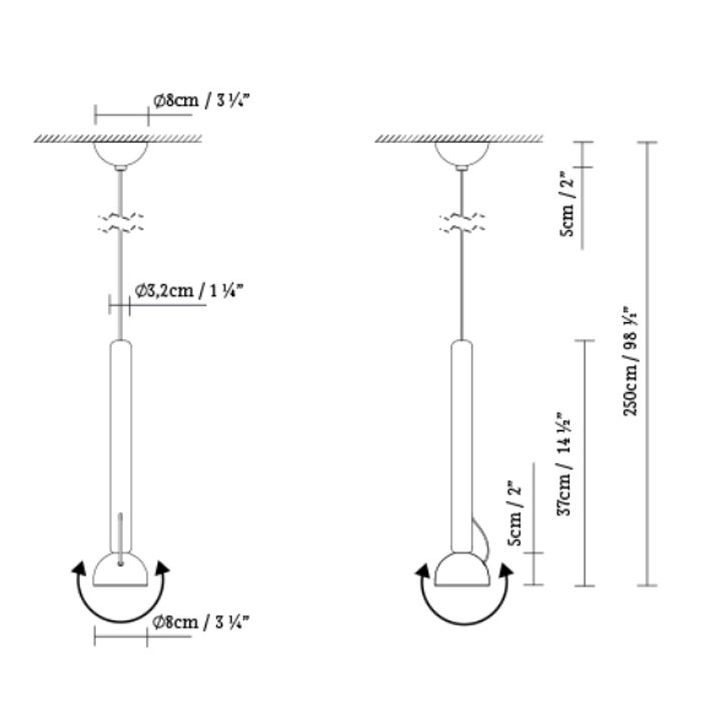 Elegantne rippvalgusti on varustatud magnetiga, mis võimaldab kuplit suunata või eemaldada.