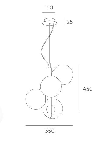 Kroomitud aluse ja valgest matt-klaasist kuplitega rippvalgusti.
