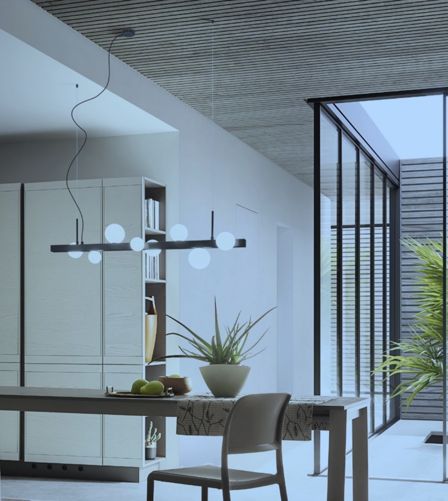 Elutuppa söögilaua kohale hästi sobiv LED valgusti. Saadaval 2 toonis: liivakarva must ja matt kuldne.