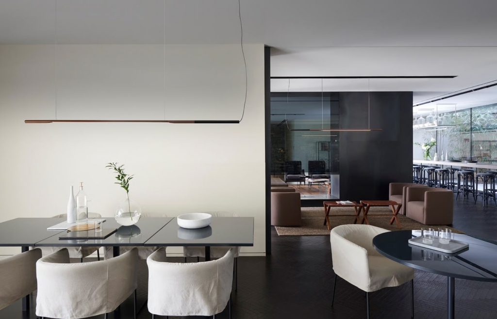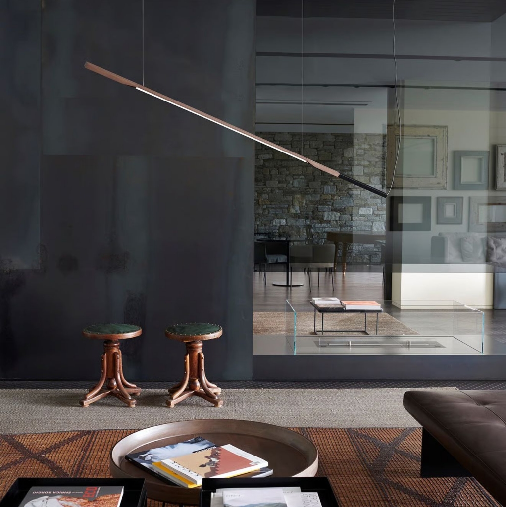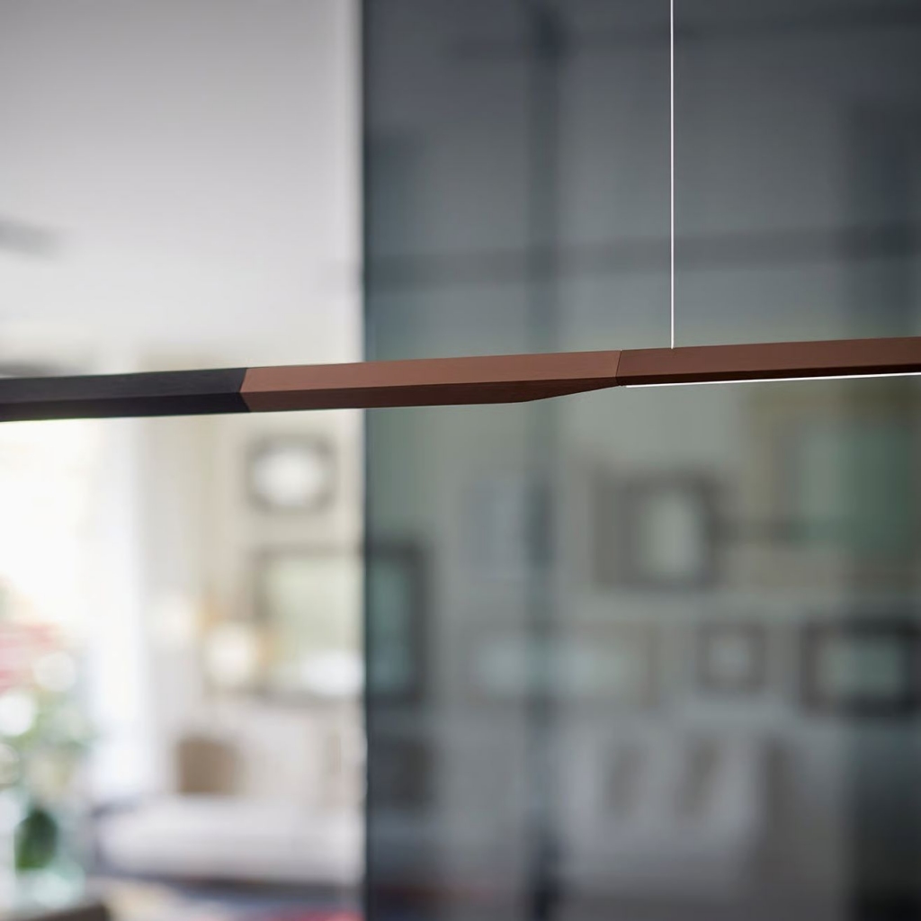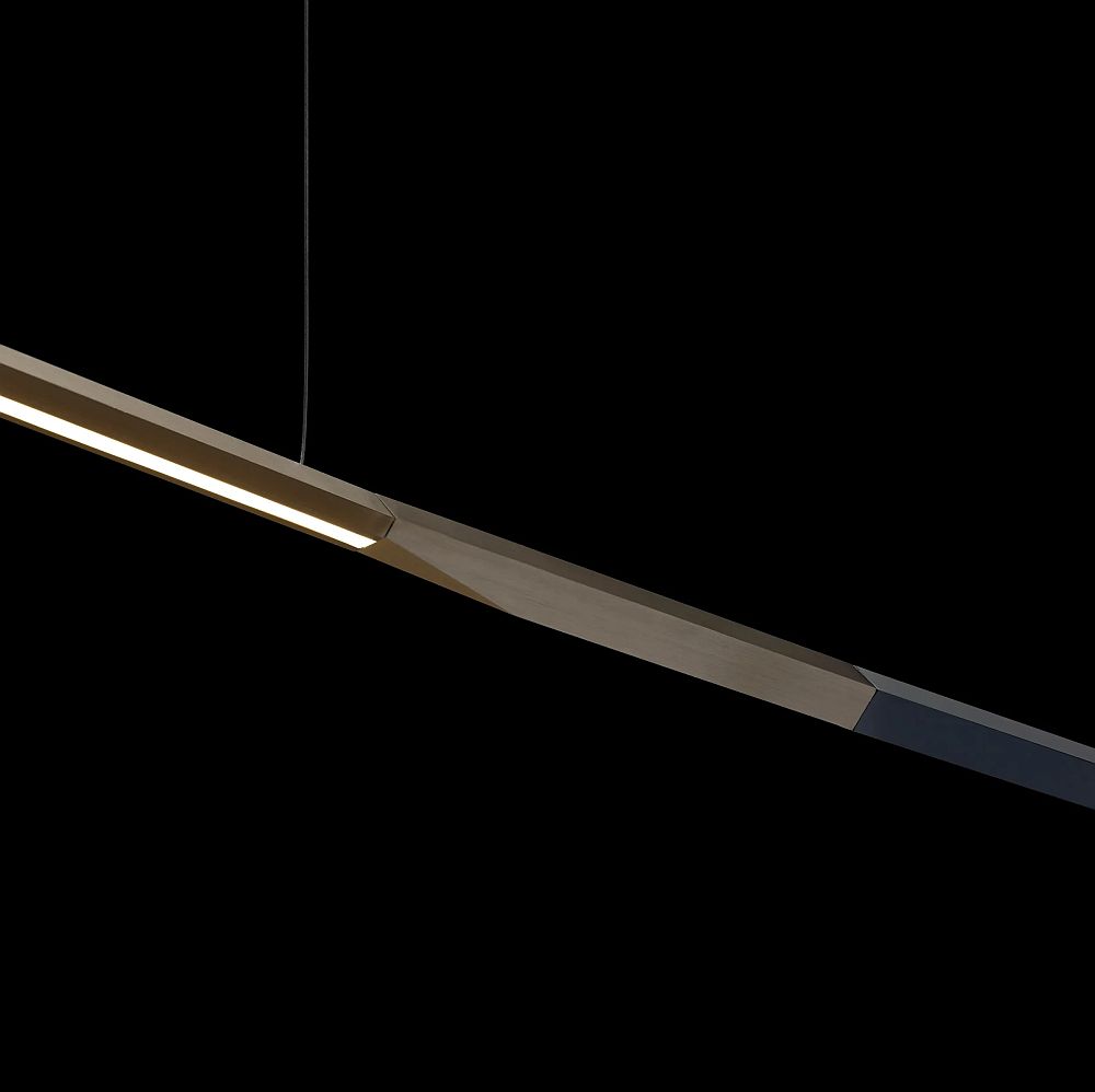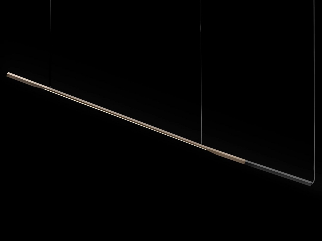 Õhuke alumiiniumist valgusti on anodiseeritud satiinpronks tooni mattmusta detailiga. See loob valgustist graafilise, kuid samas sooja mulje.