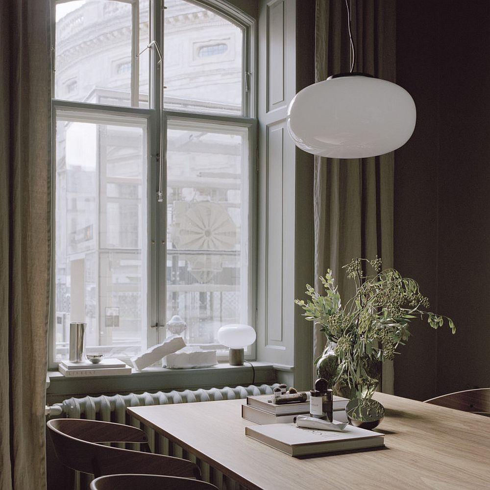 Valgusti disain on lihtne, kuid samas omanäoline. Ümar puhutud klaasist kuppel kumab pehmet valgust.