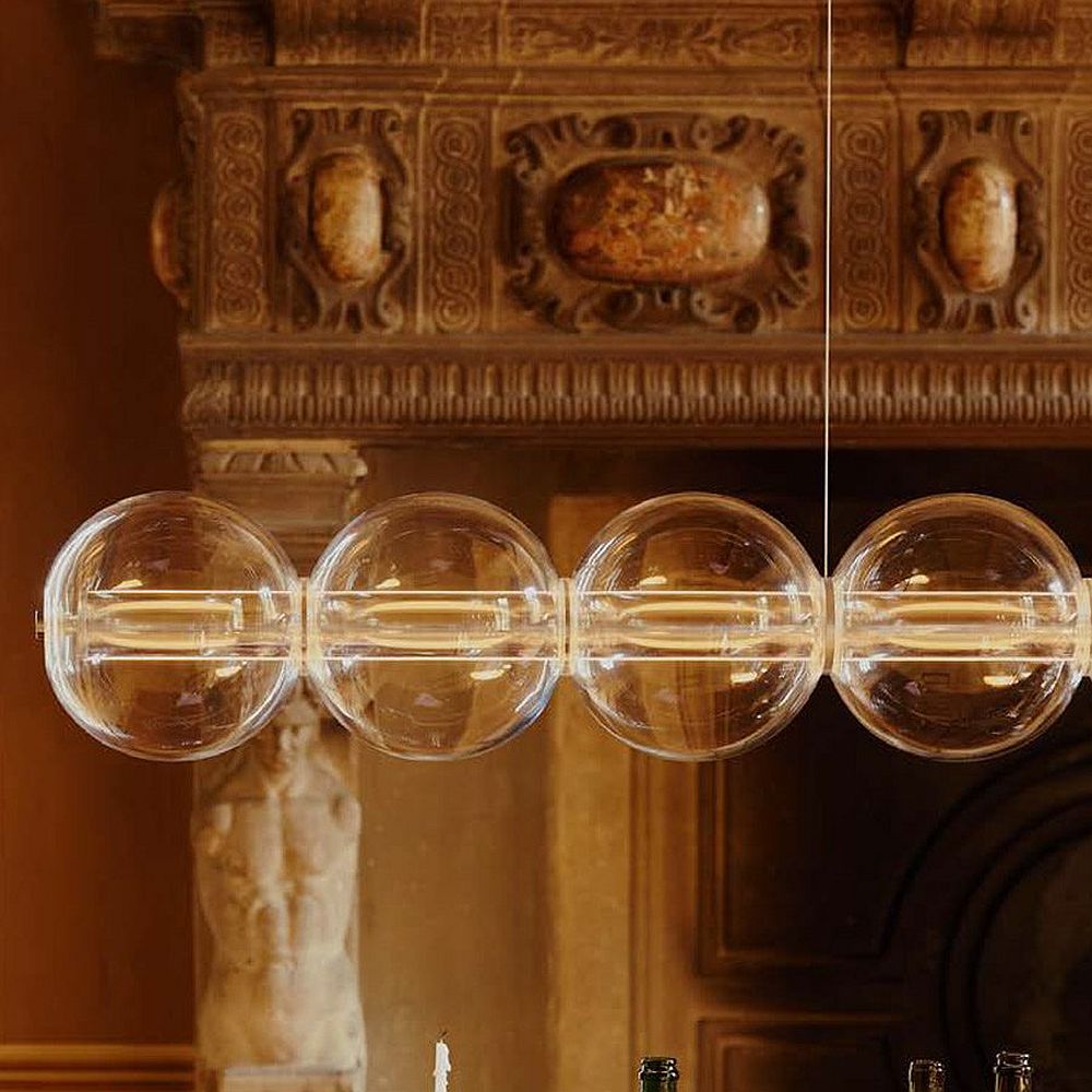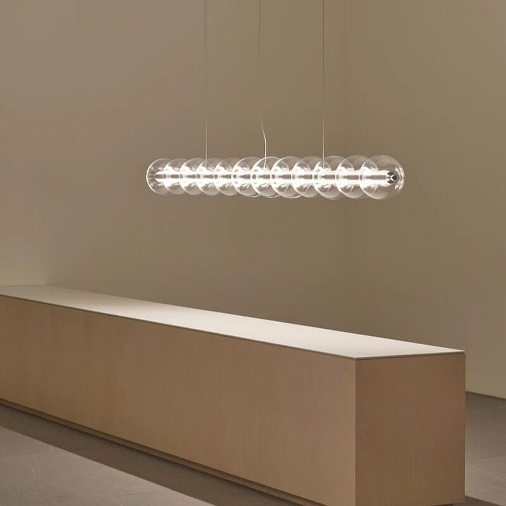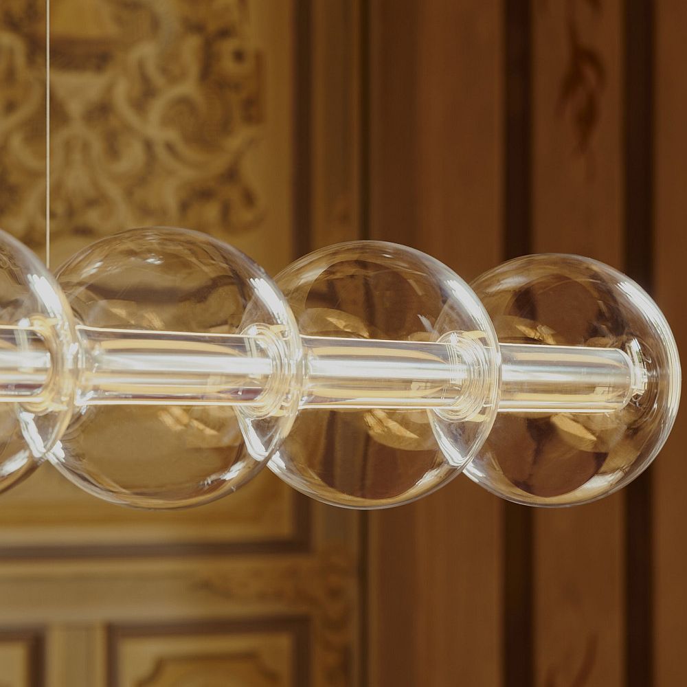 Valgusti meenutab veetilku, mis ripuvad lõngal või seebimulle, mida lapsed puhuvad. Poleeritud alumiiniumist „vardale“ pikitud puhutud klaasist sfäärid on väga õhuked, läbipaistvad ja seetõttu valguse hajutamiseks sobiv materjal. Borosilikaatklaas tagab ülima läbipaistvuse ja vastupidavuse samaaegselt.