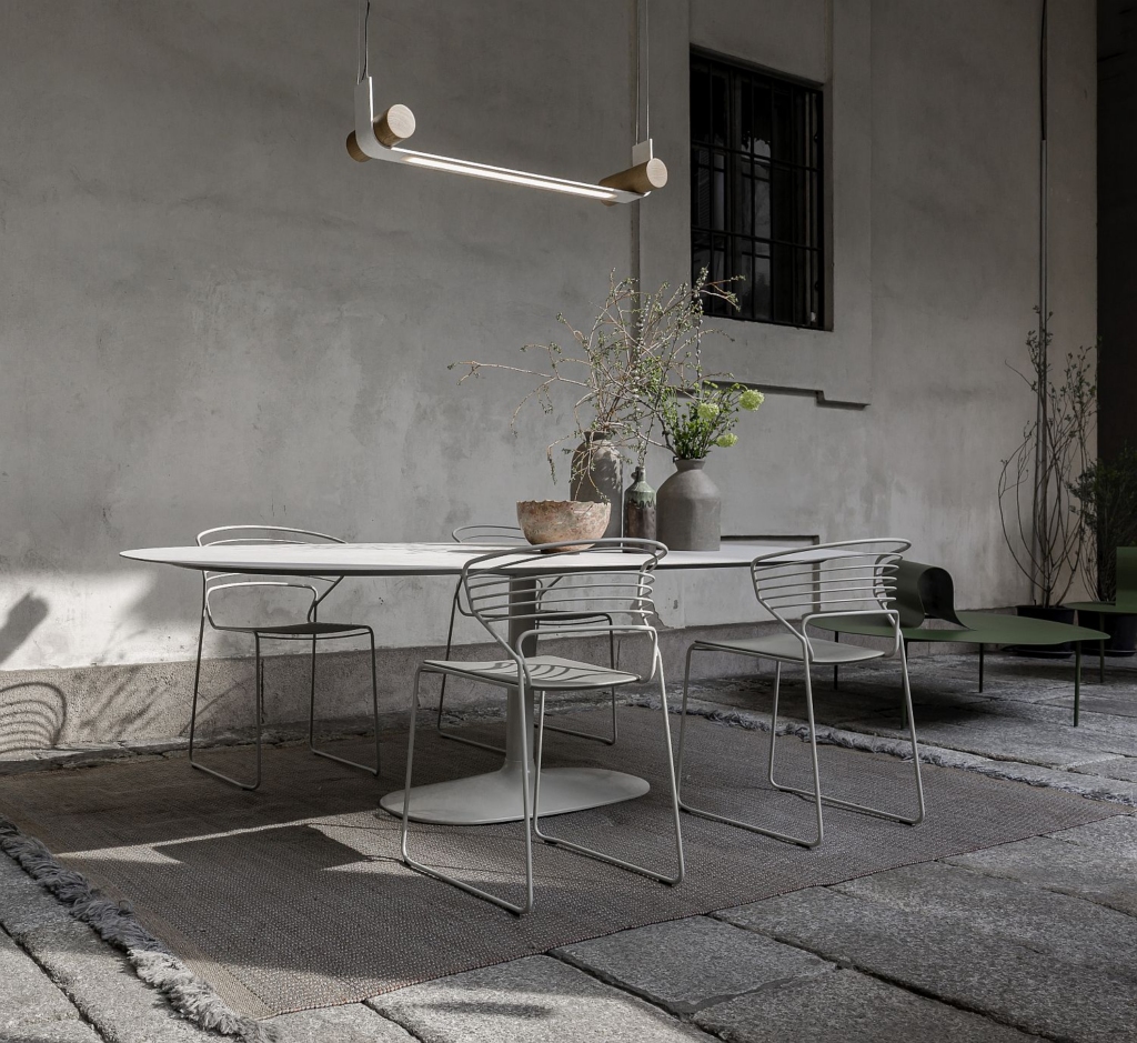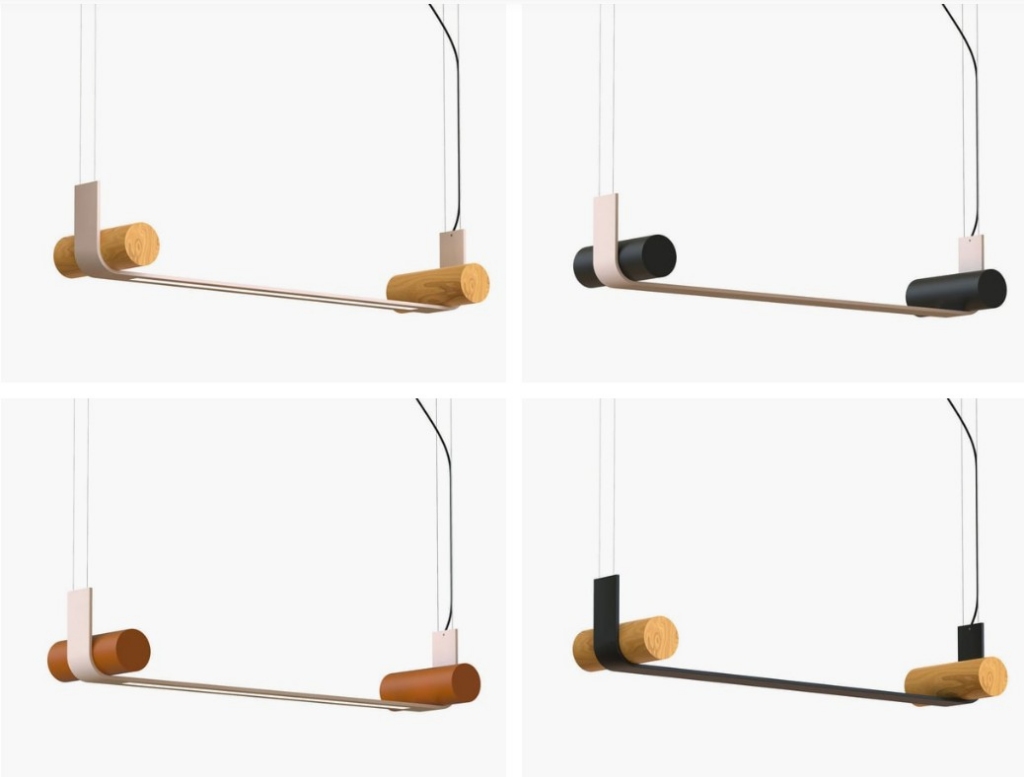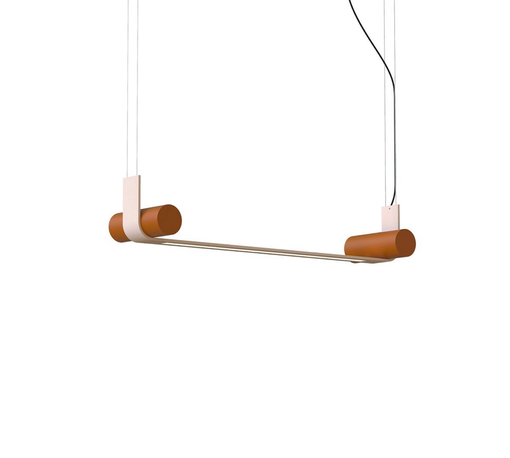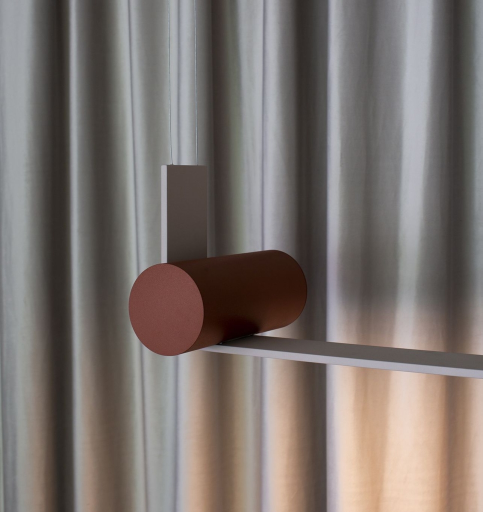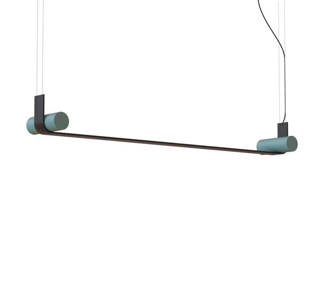 Elegantse valgusti õhulist, pulbervärvitud alumiiniumist struktuuri tasakaalustavad silindrid, mida on saadaval erinevates toonides.