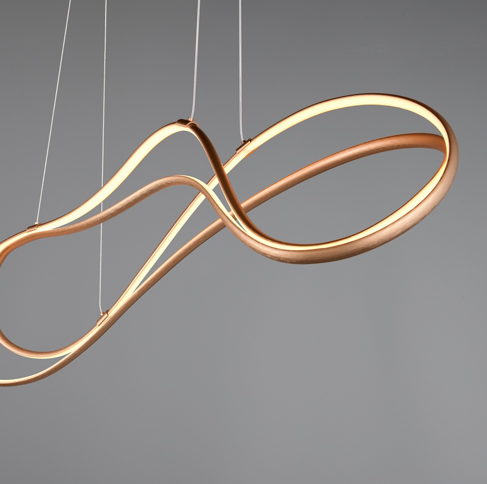 Matt-kuldse, musta või valge pinnakattega rippvalgusti.