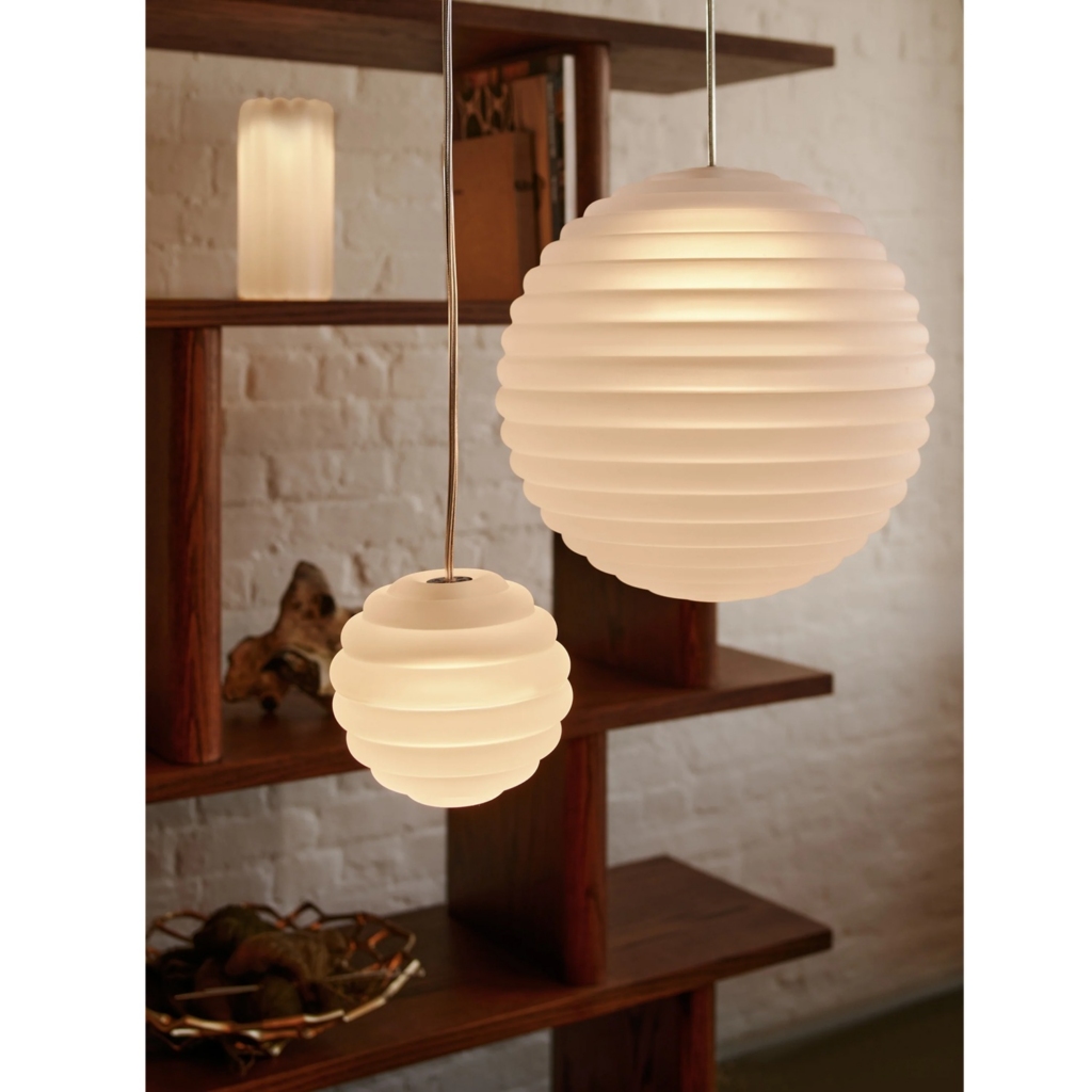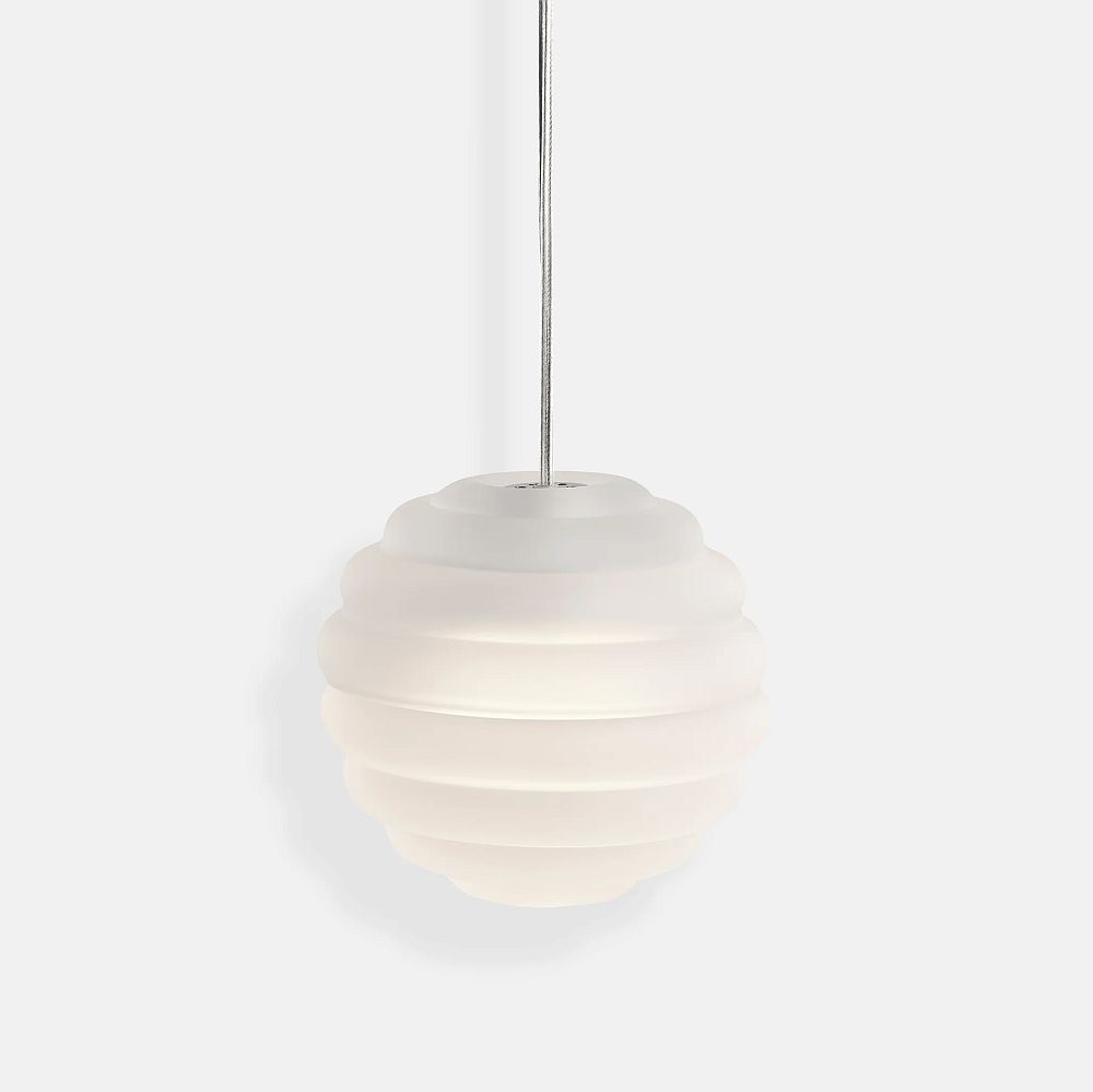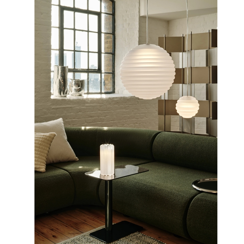 Valgusti Press efektne sooniline klaas aitab hajutada valgusallika räigust ning projitseerib ruumi lineaarseid ja triibulisi mustreid.