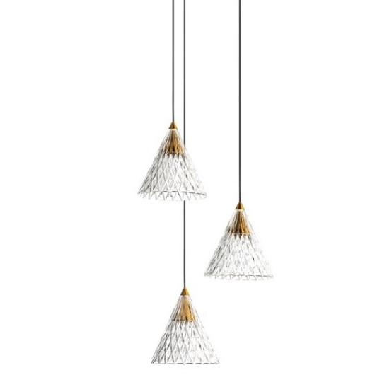 Plastikust kulpliga ja kuldsete metalldetailidega rippvalgusti.