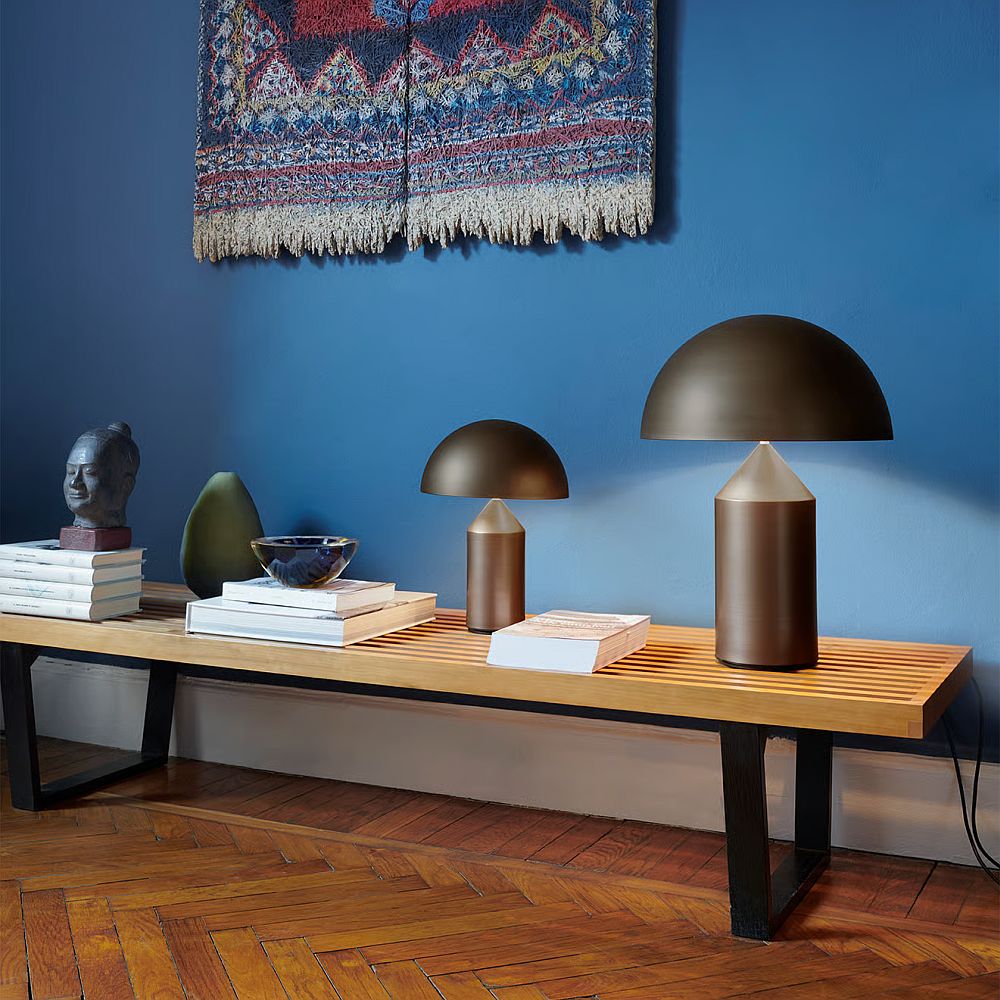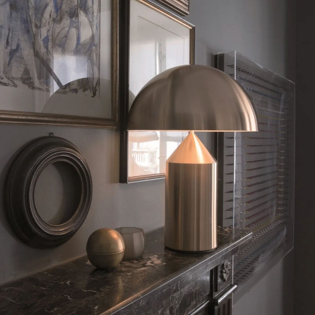 • Oluce Atollo lauavalgusti kuldne interjööris