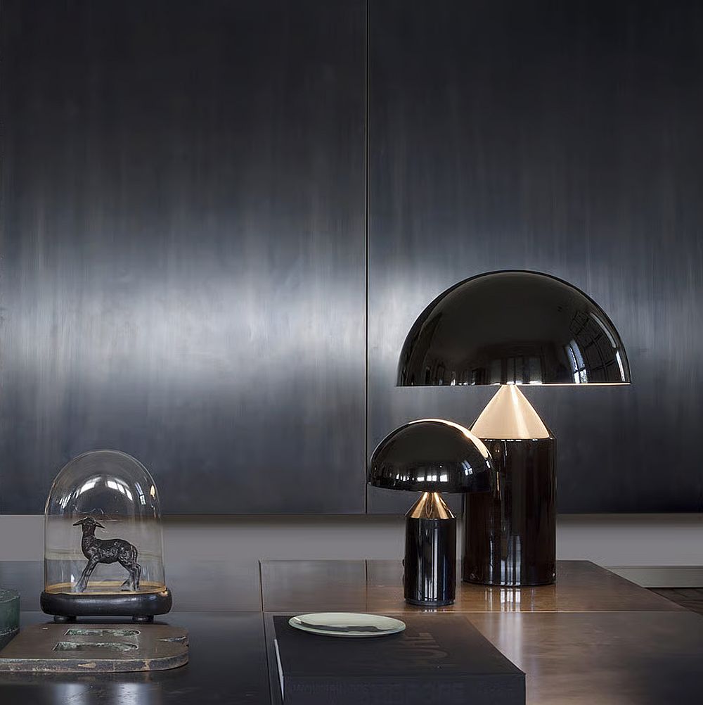 Oluce Atollo lauavalgusti nikkel must interjööris
