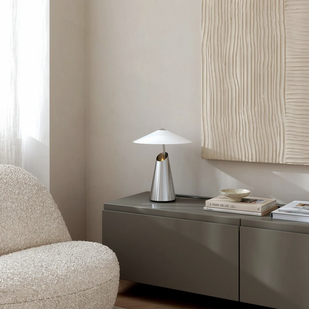 Efektne lauavalgusti on pruunika või kroom/valge pinnakattega.