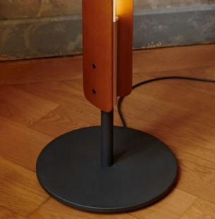 Valgusti detailid ja rosett on valmistatud poleeritud ja spetsiaalse tsapoonlakiga kaetud alumiiniumist, alus aga mustast rauast. Need nüansid annavad valgustile elegantse ja modernse välimuse, mis on harmoonilises kontrastis puidu loomuliku soojusega.
