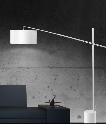 Must või valge, tekstiilkupliga põrandavalgusti.