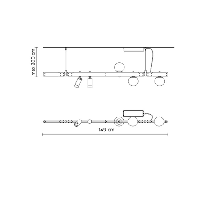 Valgustussüsteem on valmistatud mattmustast alumiinumist