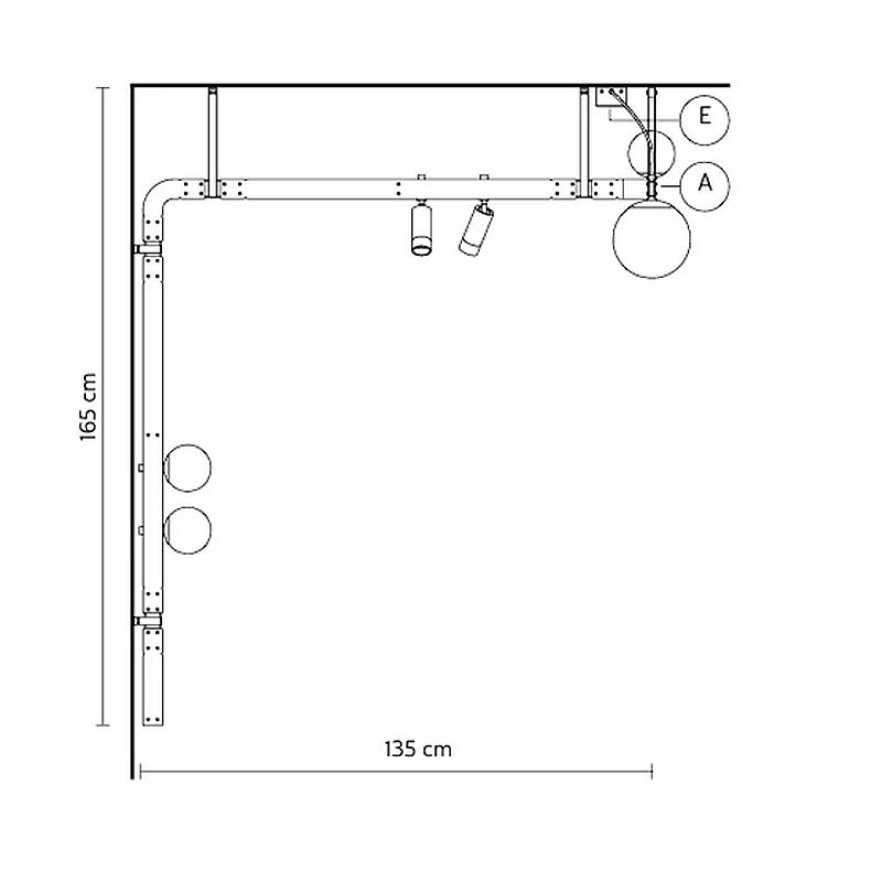 Nurgaga valgusti 135 x h 165cm ja sirge valgusti mõõduga 150 x h 200cm (max. riputuskõrgus).