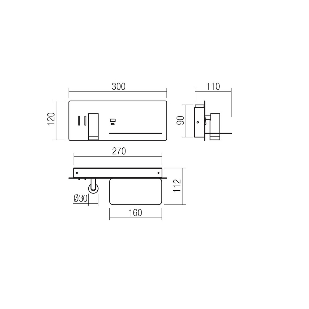 Lisaks on valgusti seinakinnitusel USB-pesa ja lülitid mõlemale valgusallikale.