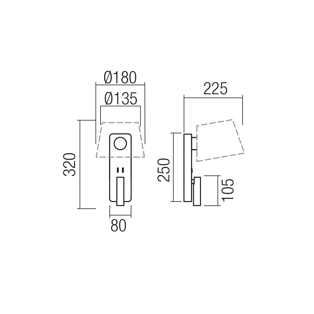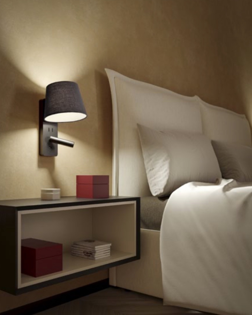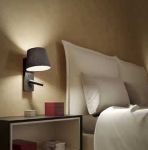 Tekstiilikupliga ja suunatava lugemislambiga seinavalgusti.