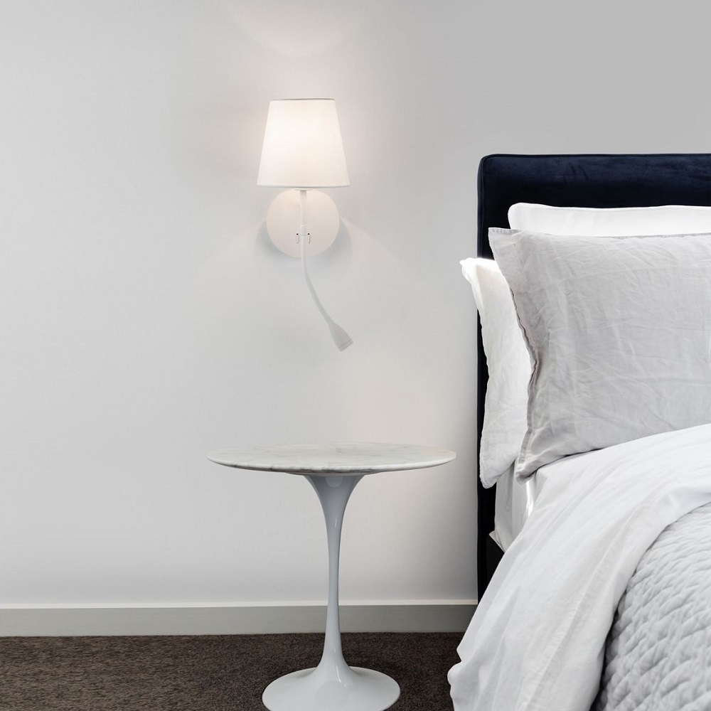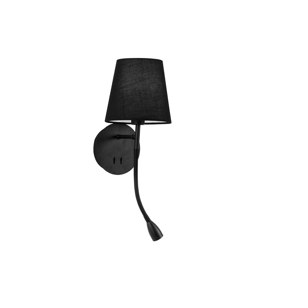 Must või valge seinavalgusti tekstiilkupli ja lugemislambiga.